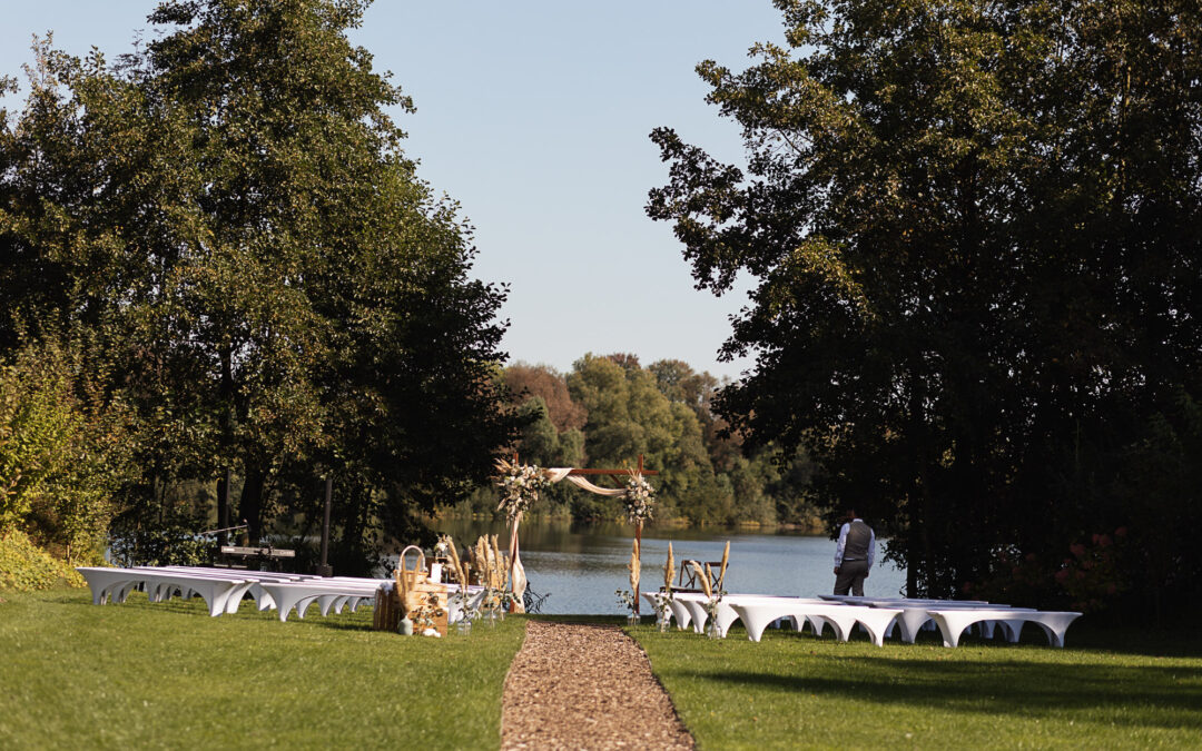 Die allergrößte Zeitfalle ist allerdings der Aufbau. Du hast doch bestimmt schon einmal einen Tisch zuhause hübsch dekoriert, oder? Eine ganze Feier mit allem Pipapo zu dekorieren ist dann allerdings eine oder gerne auch mal zehn Nummer(n) größer. Das Aufbauen für eine größere Gesellschaft dauert oft sooo viel länger, als man denkt. Nicht selten bekommt man sogar erst am Hochzeitstag zu der Location Zutritt. Versuche also, wenn möglich schon ein paar Tage vorher in die Location zu kommen und mit dem Aufbau zu beginnen. Sollte das nicht gehen (das ist häufig so!), dann such dir frühzeitig Helfer, die den Aufbau übernehmen. Das können Freunde, Familie oder auch Dienstleister sein. Ihr als Hochzeitspaar solltet vermeiden, am Hochzeitstag selbst zu dekorieren. Dafür werdet ihr nämlich gar kein Kopf haben.
