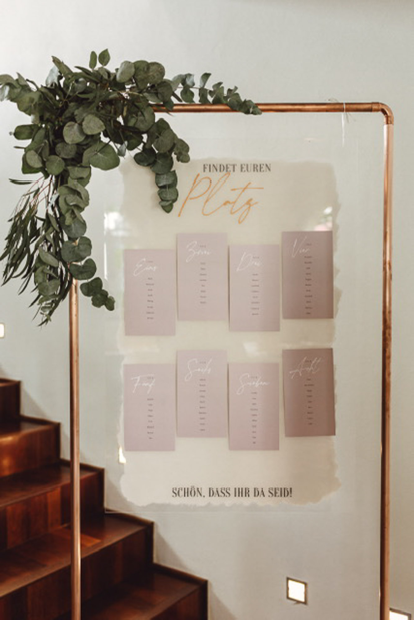 Denise ist ein zarter Schildhalter aus Kupferrohr – schlicht, aber mit einem eleganten Akzent.
